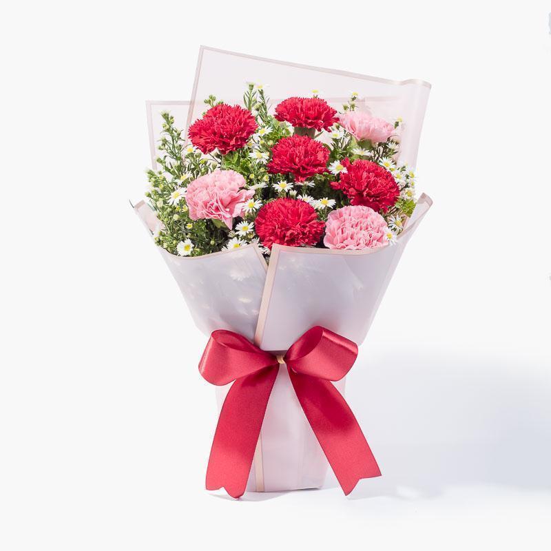 It doesn't hurt to surprise your loved one once in awhile. They deserve to feel wanted and loved by those around them. This bouquet is arranged with pink carnations, red carnations and white peacocks; the perfect bouquet to express your heartfelt emotions without having to say a word!
