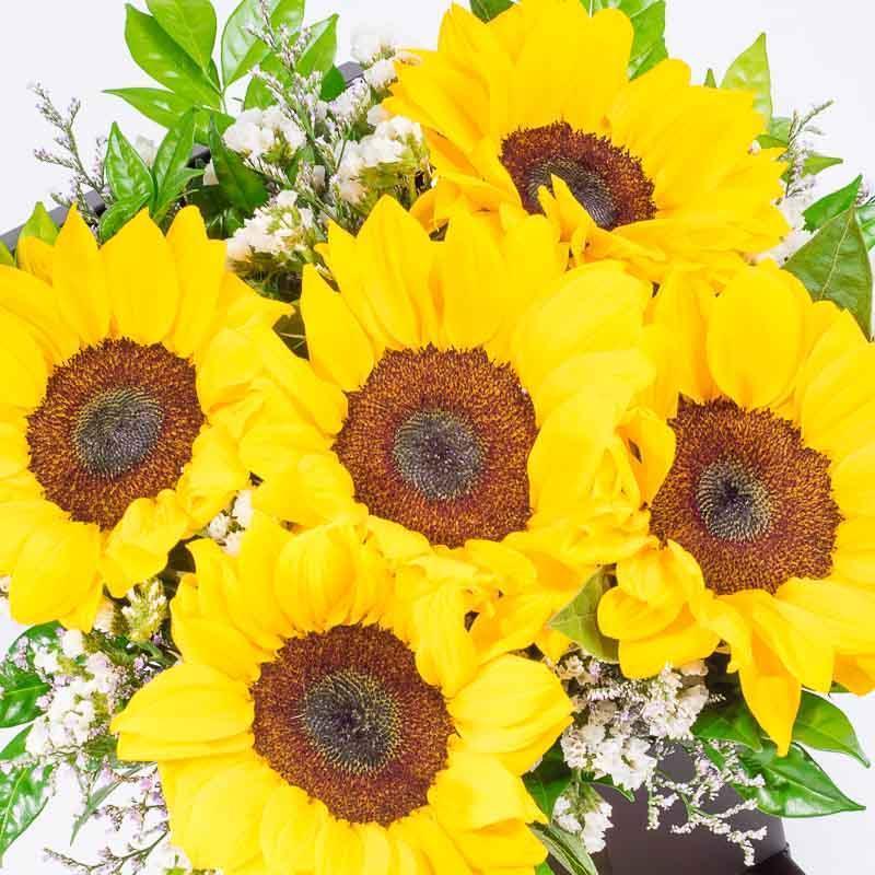 Sunflowers (5 Stalks), White Statice (3 Stalks), Purple Caspia