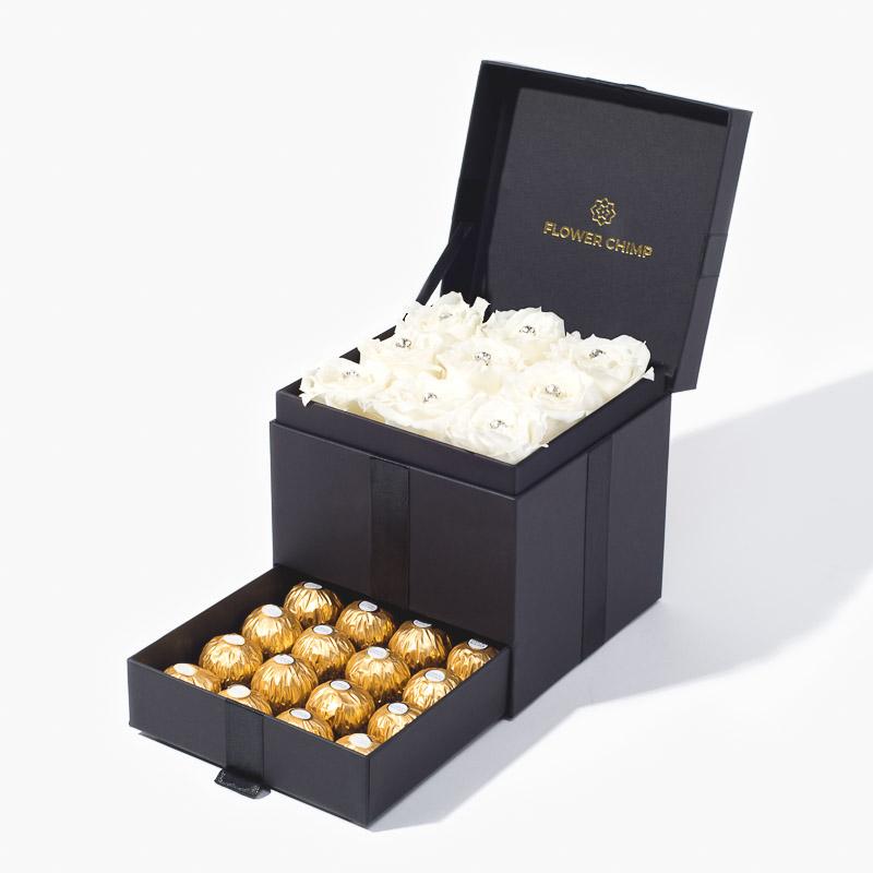 A treasure trove of timeless romance, passion and a little bit of magic; presented elegantly in a box of fresh roses and chocolates –fit for that burning love of your life.