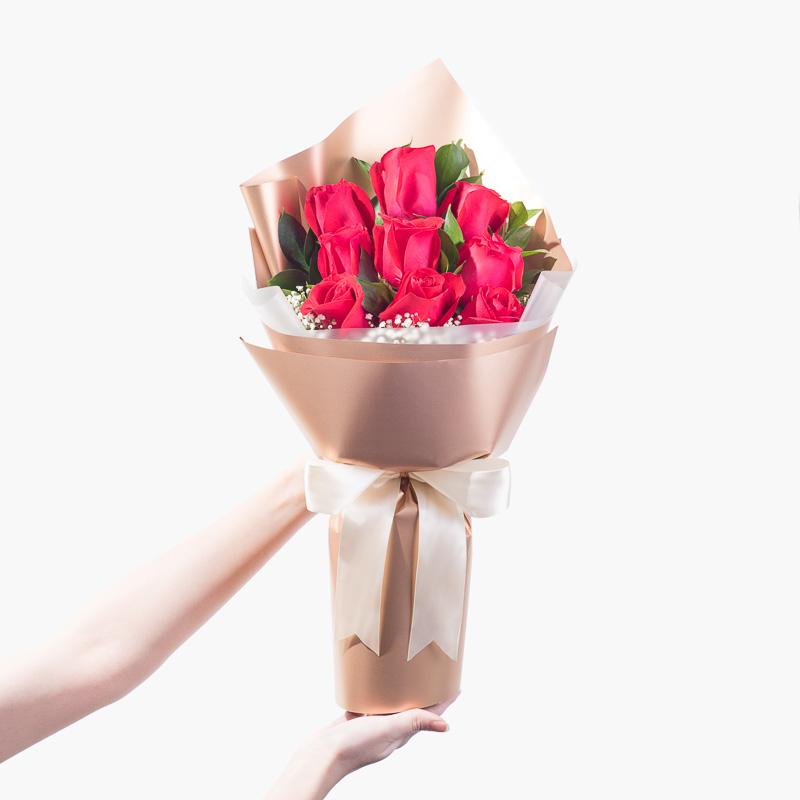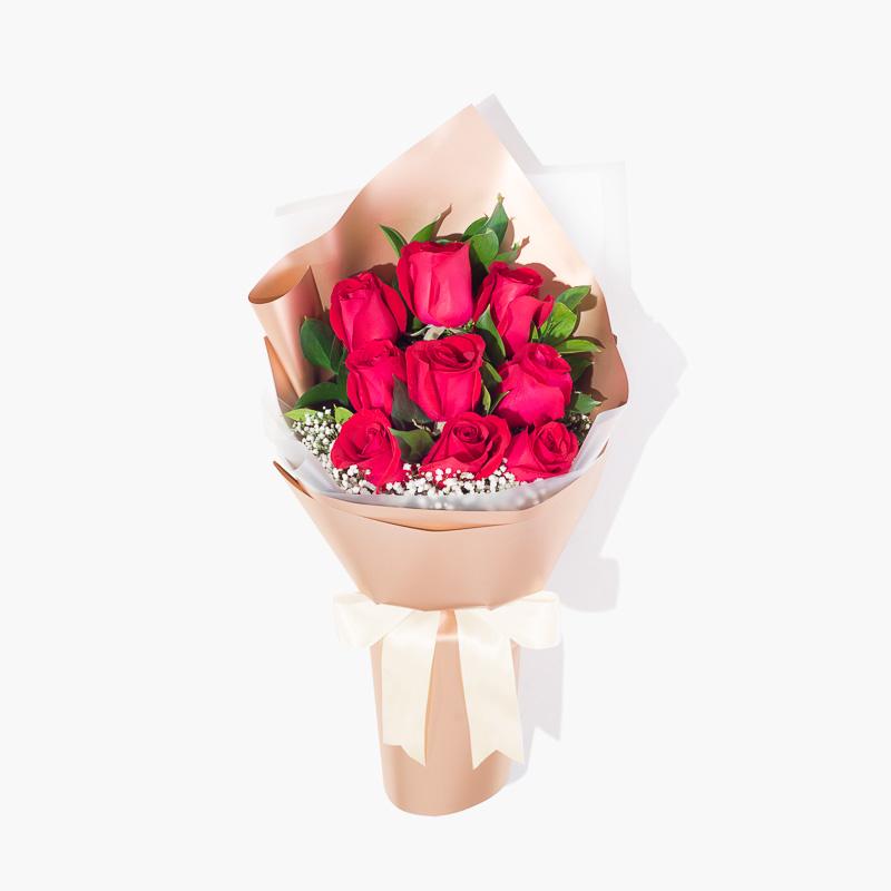Luxury bouquet with 9 red roses will definitely make your loved ones impressed. Decorated by some fresh baby breath, this bouquet is also adorned with luxurious wrapping and a beautiful big ribbon.