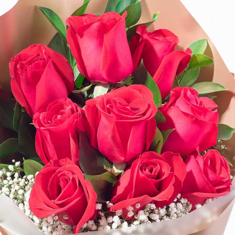 Red Rose (9 Stalks), White Baby Breath, Ruscus Leaves