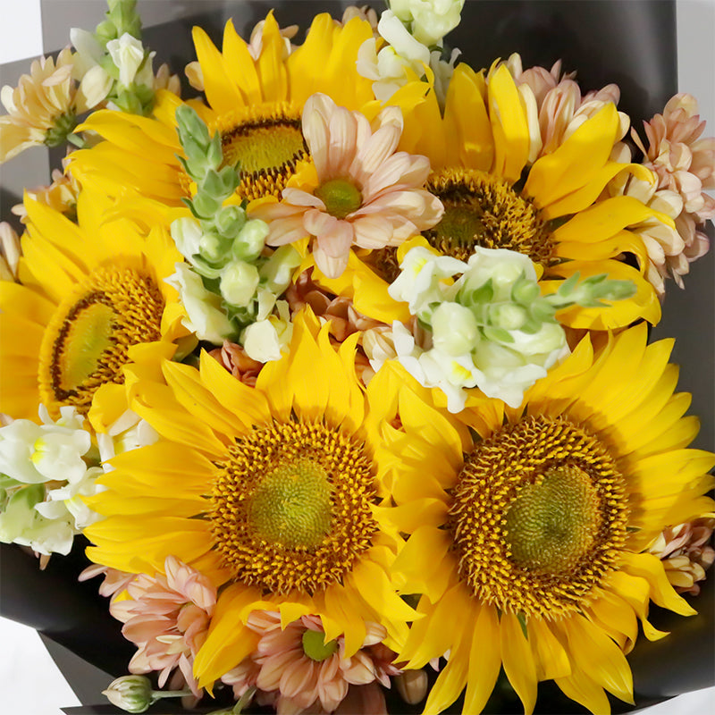 Sunflowers (5 Stalks), Peach Daisy (5 Stalks), Snapdragon (5 Stalks)