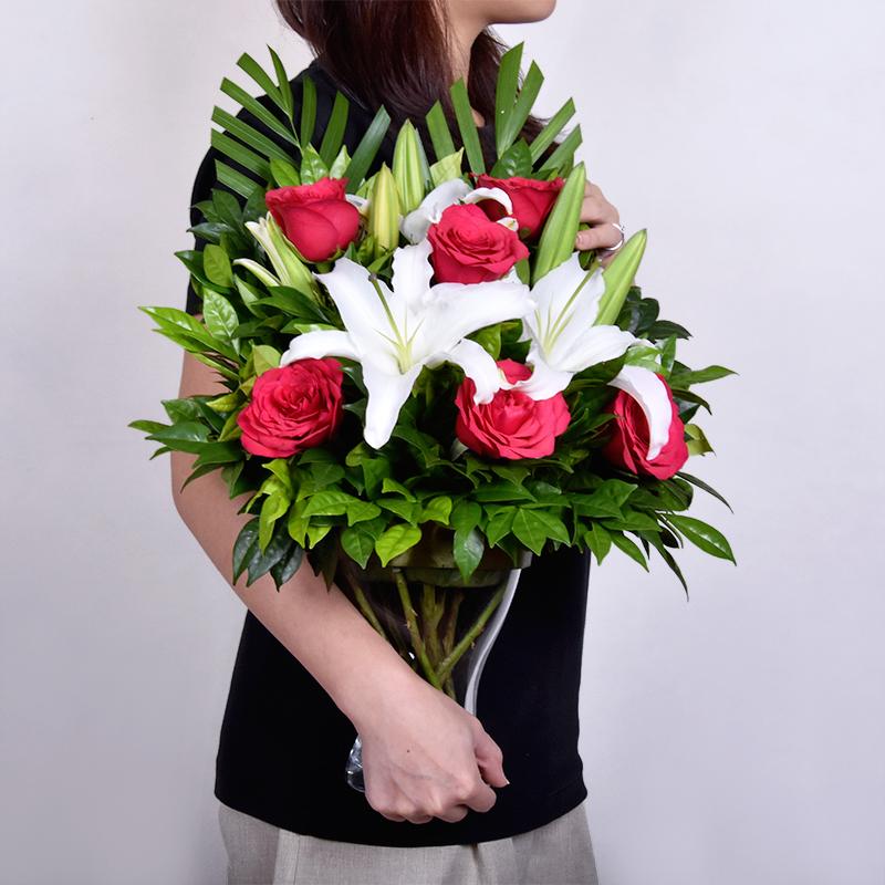 Graceful is a fresh and beautiful blend of fragrant roses, lilies, and more - all in pleasant colors from white to red. This is a perfect gift for a girl or girl; bright and cheerful colors can brighten up the atmosphere. It's also a perfect gift to say thank you or as a quick recovering remark. With our free delivery service, this flower will surely give a smile to your friends, family members or colleagues!