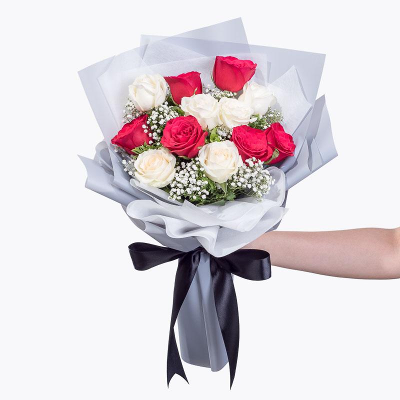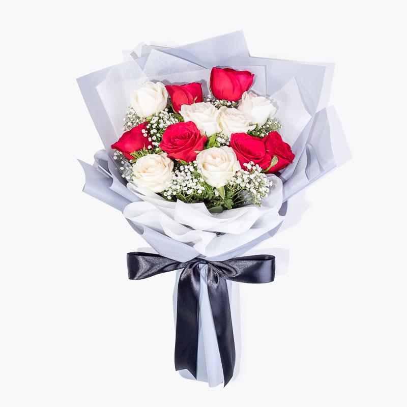White Rose (6 Stalks), Red Rose (6 Stalks), White Baby Breath
