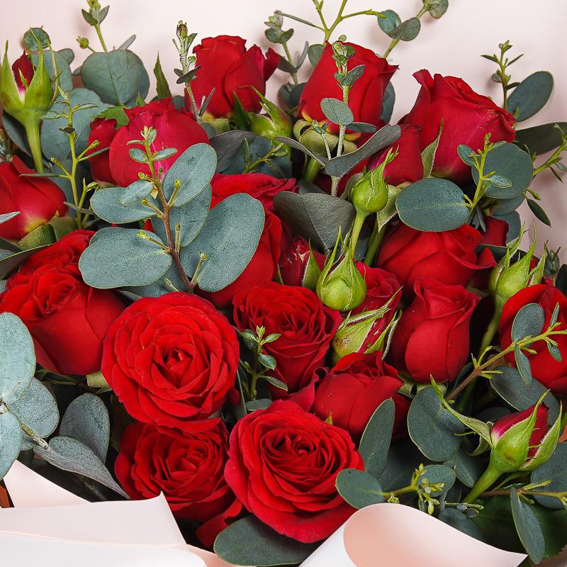 Red Rose Spray (5 Stalks), Eucalyptus Leaves