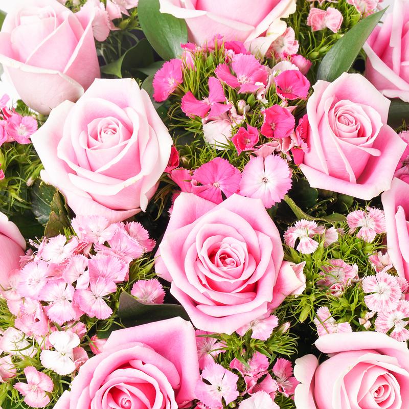 Maria Pink Rose (10 Stalks), Pink Sweet William (4 Stalks), Ruscus