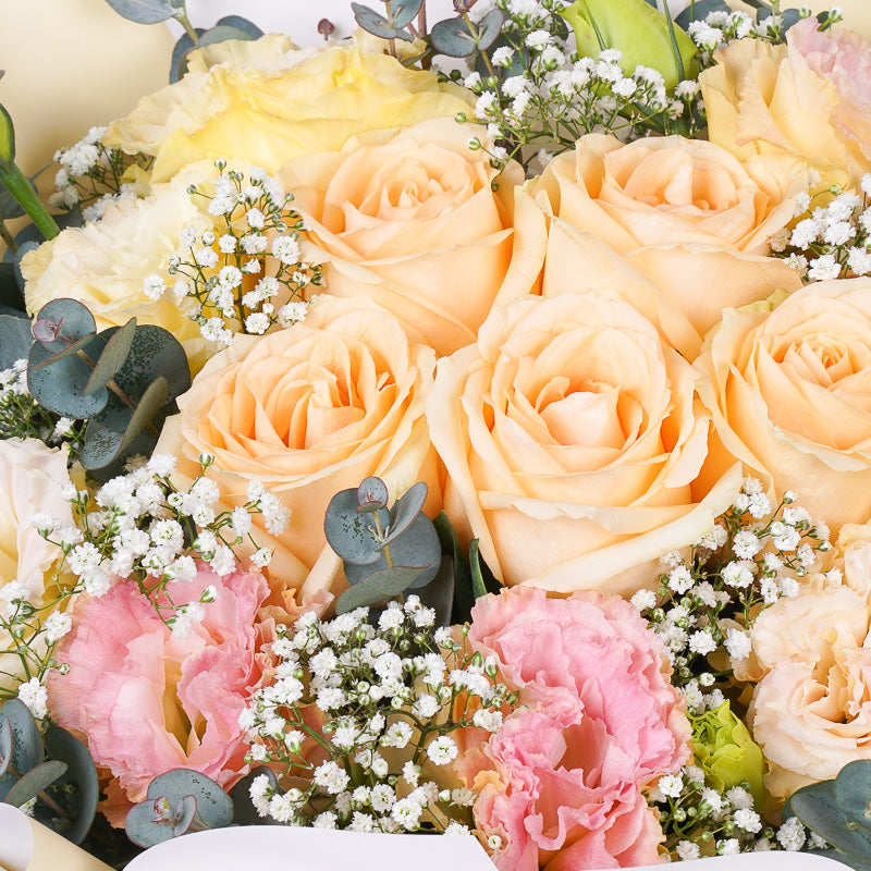 Pink Gerbera (20 Stalks), Pink Hydrangea (1 Stalks), Two-Toned Pink Button Pom (5 Stalks), Candle leaves, Eucalyptus Leaves